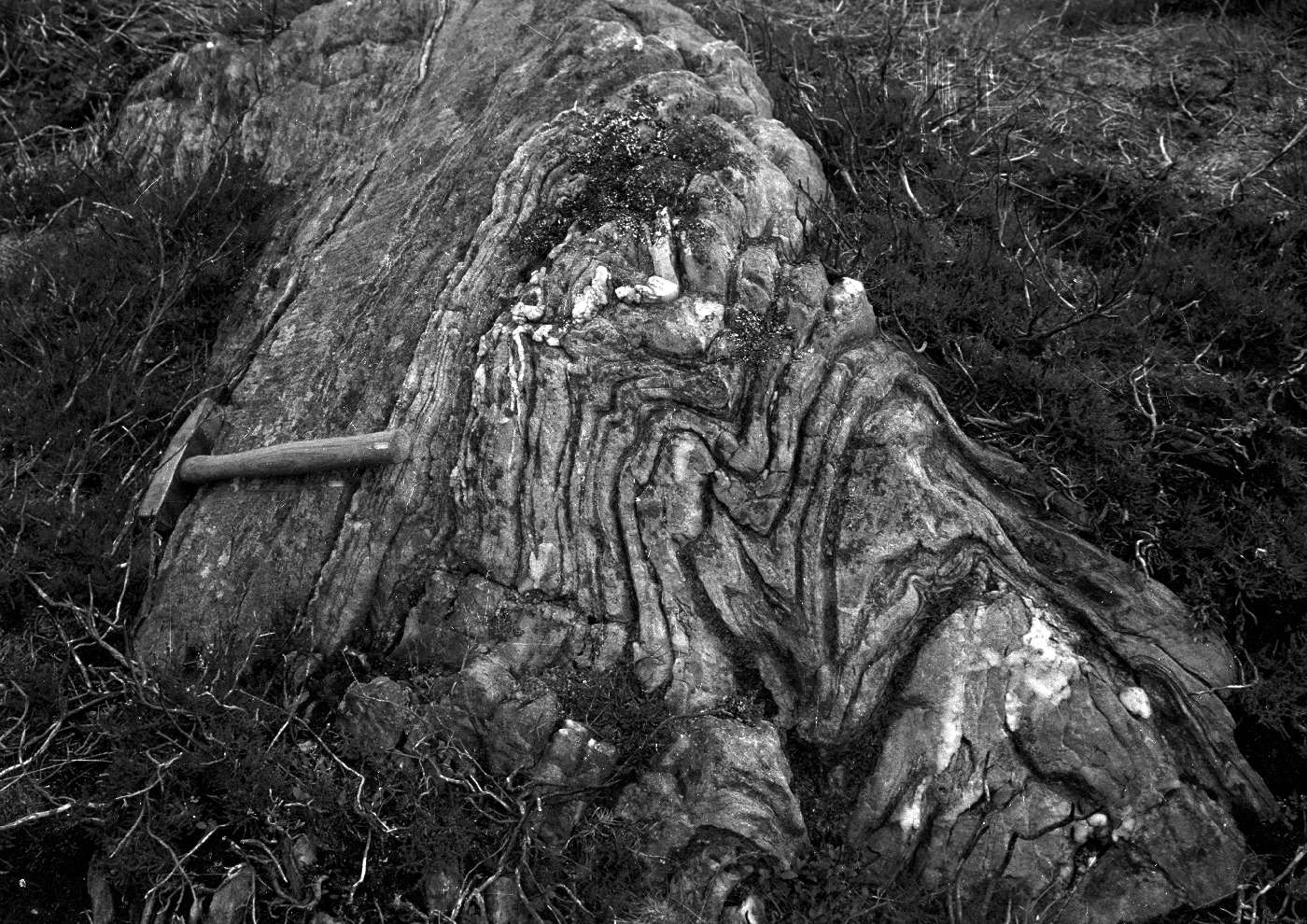 Two other aspects of this GCR site are important in the context of the interpretation of the Grampian Fold-belt. Firstly, in general the site has an unusual wealth of porphyroblastic metamorphic minerals, including biotite, garnet, staurolite, amphibole, epidote and feldspar. In particular, the spectacular kyanite of the Meall Dubh Graphitic Schist was used in a study by Wells and Richardson (1979) to determine that the Dalradian of the Central Grampian Highlands has been buried to a depth of some 30 km.